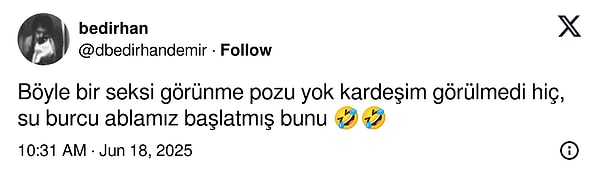 Henüz 20 yaşında lakin attığı her adımla gündem yaratmayı başarıyor! ‘Kardeşlerim’ dizisiyle yıldızını parlatan Su Burcu Yazgı Coşkun, hem oyunculuk performansıyla hem de özel hayatındaki paylaşımlarıyla toplumsal medyanın ve magazin dünyasının gözdesi haline geldi. Son olarak Burak Deniz ile başrolünü paylaştığı Bir Gece Masalı dizisiyle izleyici karşısına çıkan genç oyuncu, yeniden toplumsal medya paylaşımlarıyla ortalığı birbirine kattı. Su Burcu Yazgı Coşkun’un pozları ve biçimi X kullanıcılarının eleştirisini topladı.