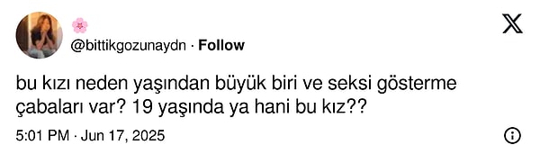 Su Burcu Yazgı Coşkun’un toplumsal medyadan yaptığı son paylaşımda hem pozları hem de kıyafeti yaşının ötesinde bulundu! O pozlar X kullanıcılarının eleştirisini topladı.