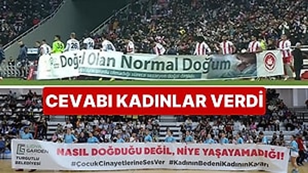 Kadınların vücudu üzerine yorum yapan, direktif veren erkek futbolcuların taşıdığı bu pankarta karşılık parkedeki bayanlardan geldi.