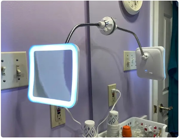 O göz pınarına taşan farı da, minicik eyeliner yanılgısını da kaçırmak yok artık. Bu LED ışıklı ayna her ayrıntısı net gösterip, esnek kuğu boynuyla ‘şöyle azıcık sola’ sıkıntısına son veriyor. Kablosuz, taşınabilir ve tam senlik! Konutta, valizde, her yerde makyaj köşesi kurmak artık mümkün.
