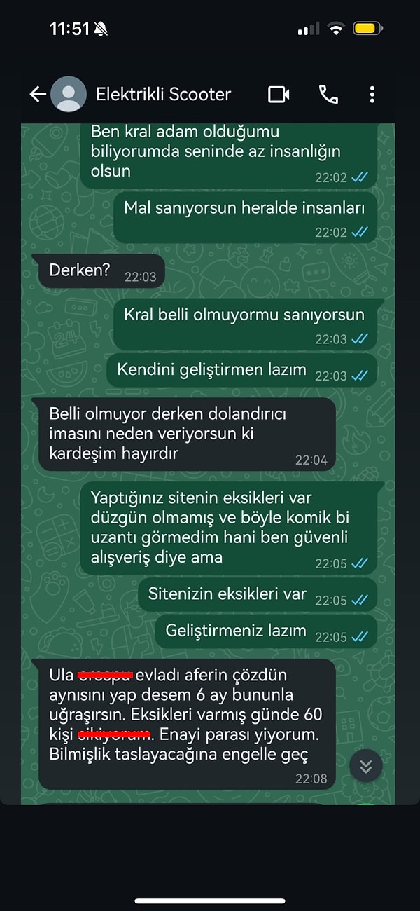 Ancak alıcı dolandırıcılığı fark edip linke tıklamıyor. Dolandırıcı satıcı, alıcının uyanıklığı anlayınca görmüş olduğunuz üzere küfürler yağdırmaya başlıyor.