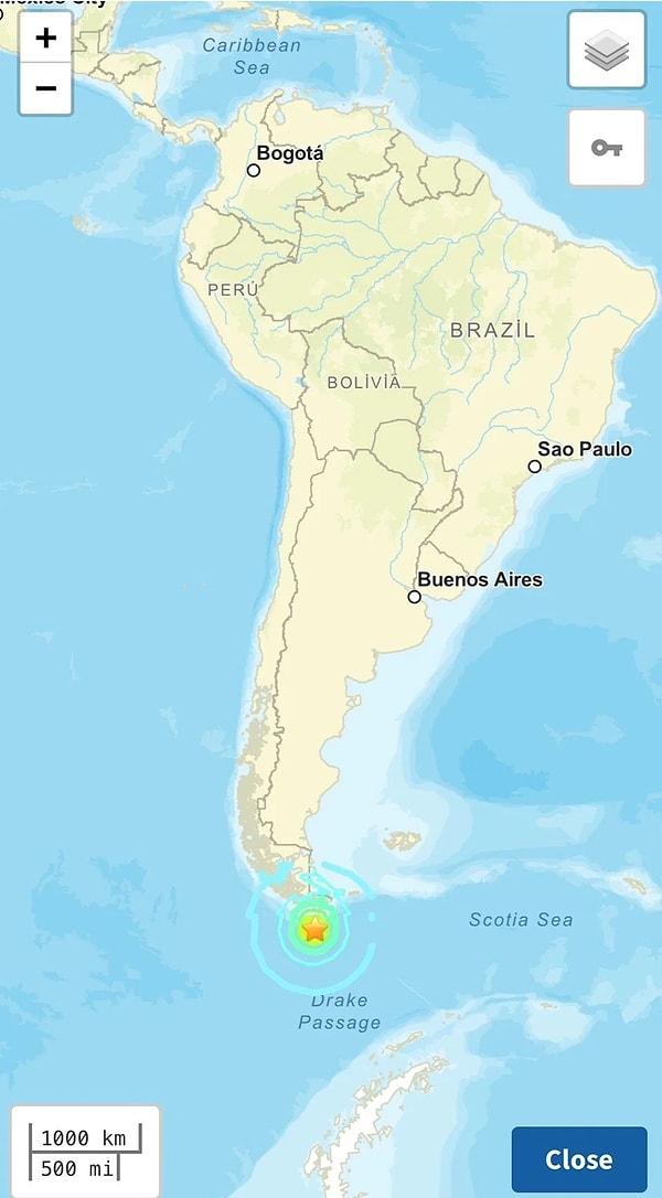 Sosyal medya hesabından paylaşım yapan AFAD, ‘Güney Amerika açıklarında Drake Boğazı’nda milletlerarası ajanslardan alınan birinci bilgilere nazaran 7.4 büyüklüğünde bir #deprem meydana geldi’ diye yazdı. 7.4 büyüklüğündeki sarsıntının ardından bölgede en büyüğü 6.6 ve 6.4 olmak üzere toplamda 21 artçı deprem kaydedildi.