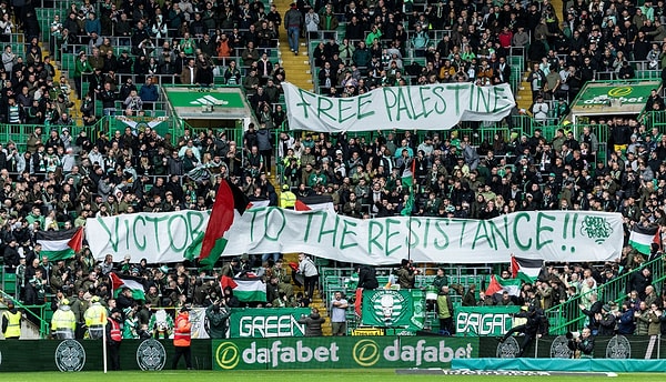 İsrail’in Filistin’e uyguladığı soykırımın milletlerarası kamuoyunda yansımaları devam ediyor. Dünyanın birçok yerinden kurumsal olarak olmasa da ferdi olarak birçok kişi Filistin’in maruz kaldığı haksızlıklara ses çıkarıyor. Futbol dünyası ise Bodo Glimt, Celtic üzere kulüpler haricinde kurumsal bir reaksiyon gösterebilmiş değil. Fakat kimi taraftar kümeleri bu sessizliği yıkabildi.