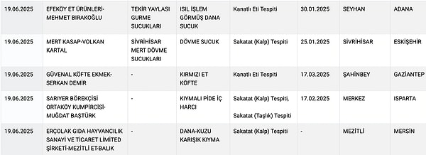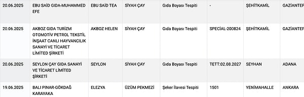 Listede Türkiye’nin dört bir yanında faaliyet gösteren firmalar yer aldı. Adana’dan İstanbul’a, Gaziantep’ten Manisa’ya kadar hile yapan firmalar gözler önüne serildi.