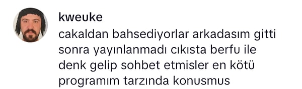Berfu Yenenler, çekim sırasında yaşadığı olayı anlatırken, konukla sahnede birbirlerine laf sokmaya başladıklarını söyledi. Üstelik o konuğun Danla Bilic’in de çok yakından tanıdığı bir isim olduğunu belirten Yenenler ‘Bildiğin hengame ettik!’ ifadelerini kullandı.