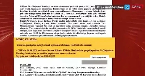 Gazeteci Nuray Başaran, TGRT’de kurultaya ait Yüksek Seçim Konseyi’ne (YSK) itiraz başvurusu yapıldığını duyurdu.