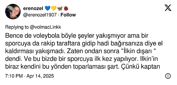 Galatasaray Bayan Voleybol Ekibi kaptanı Birincinin Aydın’ın Fenerbahçe’ye karşı oynadığı maçta, tribündeki taraftarlar ile diyaloğa girmesi, toplumsal medyada görüş ayrılıklarını beraberinde getirdi. Ulusal atlete takviye verenler de oldu, reaksiyon gösterenler de.