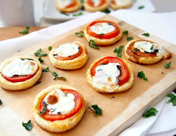 1. Küçük Caprese Milföy Lokmaları ve Baharatlı Kabak Cipsleri