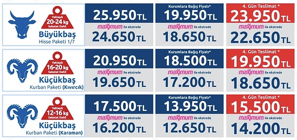 CarrefourSA 4. Gün Teslimat Kurban Fiyatı: