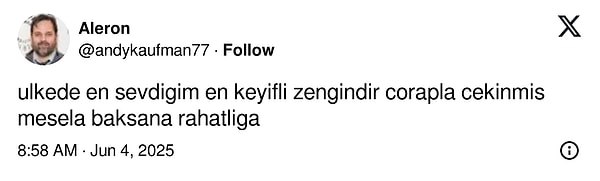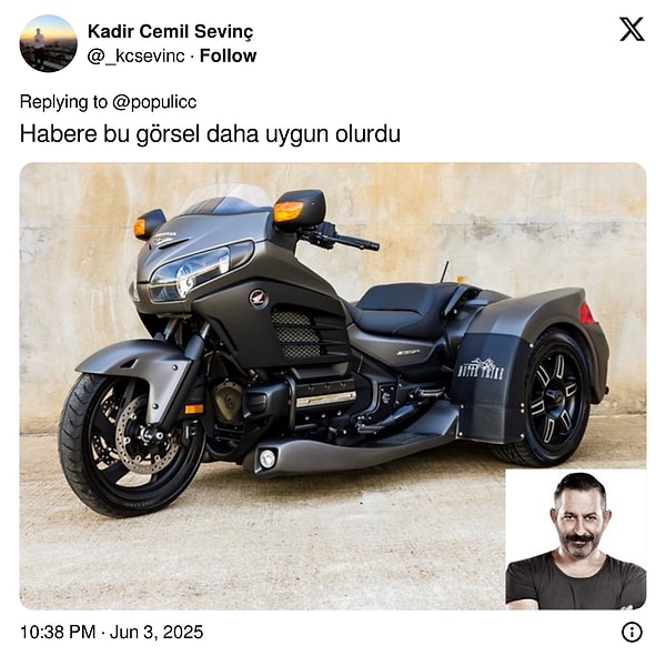 Kendisini gündeme getiren bu paylaşımı görenler değişik mevzulara takıldı. Motosikletin üç tekerlekli oluşu, 2 milyon TL bedelinde oluşu derken son olarak da Cem Yılmaz’ın geleceğimizden parlak bembeyaz çorapları göze battı. Cem Yılmaz’a her vakit olduğu üzere bu defa de yüzlerce yorum geldi.