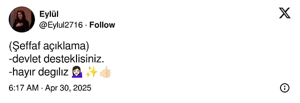 ‘(Şeffaf açıklama)-devlet desteklisiniz.-hayır degiliz.‘