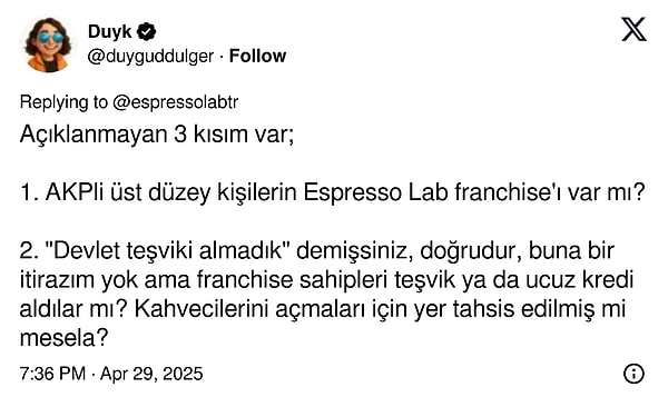 1. AKPli üst seviye bireylerin Espressolab franchise’ı var mı?