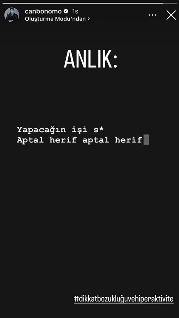 Durumu dikkat dağınıklığına veren Can Bonomo ‘Anlık: Yapacağın işi s… Aptal herif, aptal herif! #dikkatbozukluğuvehiperaktive’ notunu düştüğü öyküyü toplumsal medya hesabından paylaştı.