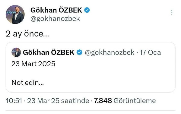 Gökhan Özbek’in Ocak ayında attığı paylaşımlar da öne sürüldü.