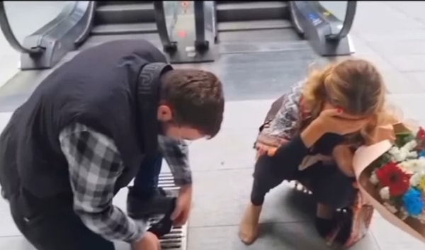 Bir AVM ziyareti sırasında Nadide Sultan, ayakkabısının topuğu yerdeki mazgala sıkışınca oradaki bir çalışan müzikçinin imdadına yetişti.