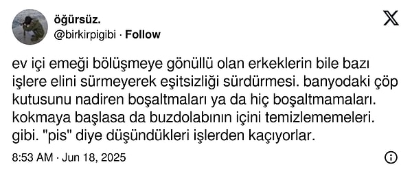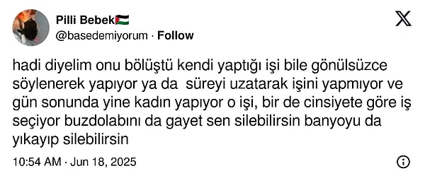 Ev içi emeği bölüşmeye istekli olan erkekler bile birtakım işlere elini sürmüyor;
