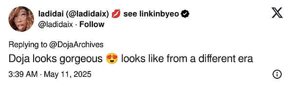 Bir kullanıcı 2020 Doja Cat tarzıyla, 2025’i karşılaştırdı.