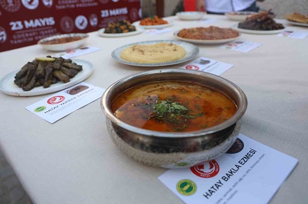 Hatay’ın ünlü lezzetleri Aşur Yemeği, Bakla Ezmesi, Peynirli İrmik Helvası, Taş Kadayıfı, Tuzlu Yoğurt Çorbası, Yaprak Sarması, Ekşi Aşı, Bahtenis Dolması, Fellah Köftesi ve Pirzolalı Yaprak Sarmasına coğrafik işaret verildi.