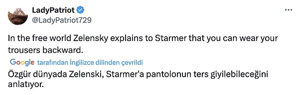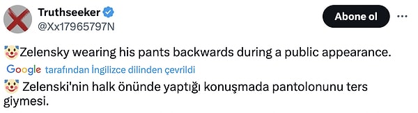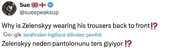 Takım elbiseyle görmeye alışık olmadığımız Zelenskiy’nin ‘bir daha ekip elbise giymemesi gerektiği’ni paylaşan kullanıcılar fermuarın artta olduğunu tez etti. Pek çok kişi pantolonun duruşundan bu türlü bir manzara ortaya çıktığını da savundu. Lakin manzaralar toplumsal medyada kısa müddette viral oldu.