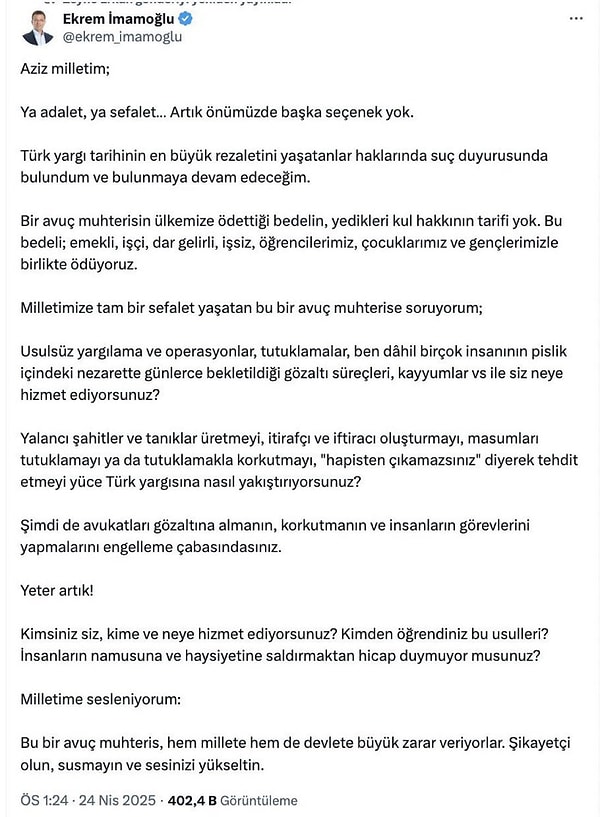 Ekrem İmamoğlu’nun hesabının kapanmasına neden olan paylaşımı şu halde 👇
