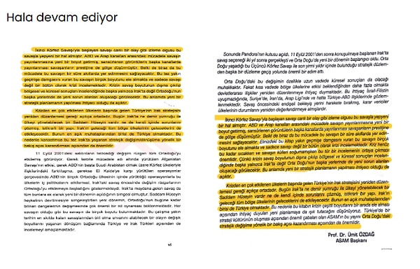 Özellikle Ümit Özdağ, Sedat Laçiner ve Serhat Erkmen’in birlikte yazdığı Irak Krizi (2002-2003) adlı kitaptan alınan kısımlar dikkat çekiyor. Hatta Oğur, kitabın arka kapağındaki tanıtım metninin bile tezde kullanıldığını öne sürüyor.