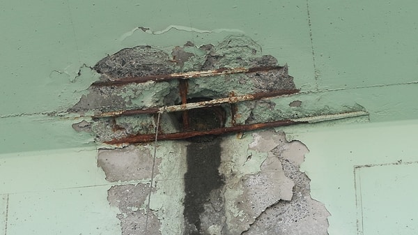 Köprünün kolon ve kirişlerinde ise demirlerin ortaya çıktığı görüldü.