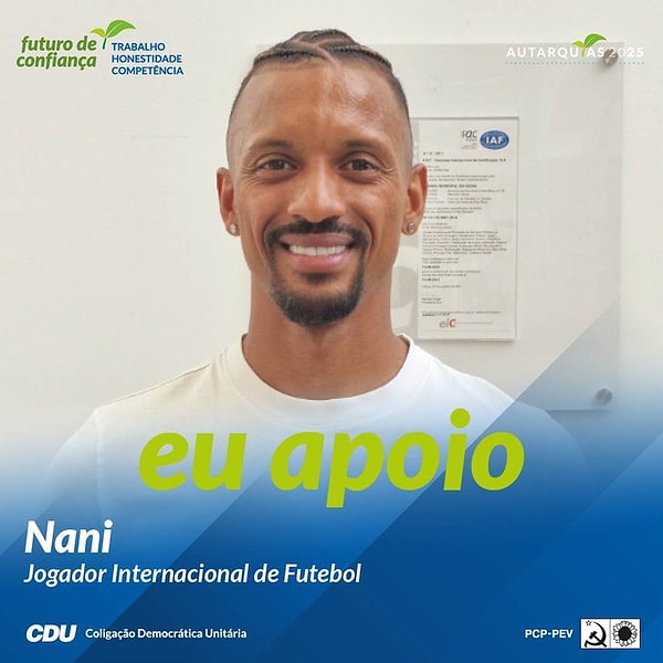 Luis Nani, 18 Mayıs’ta gerçekleşecek Portekiz’deki genel seçim öncesi tutumunu açıkladı. Nani, toplumsal medyadan Portekiz’deki Komünist Parti’yi desteklediğini açıkladı. Portekizli eski futbolcu, Portekiz Komünist Partisi liderliğindeki Demokratik Koalisyon’a dayanak paylaşımı yaptı.