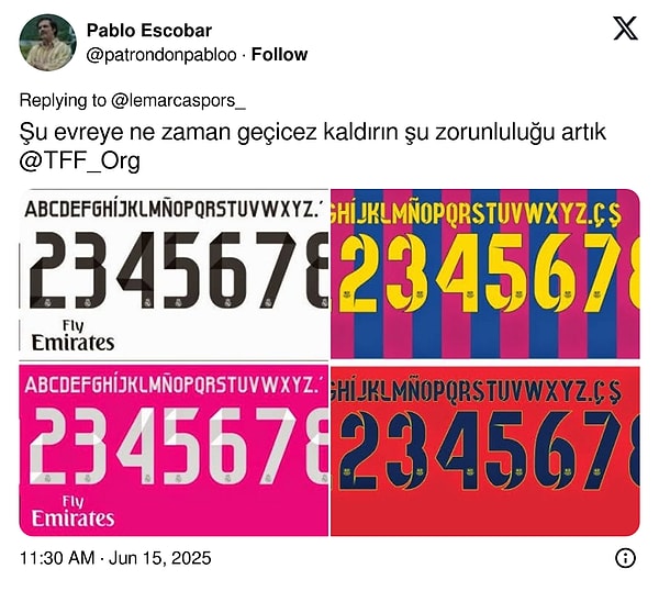 Yıllardır formalarda kullanımı zarurî tutulan Arial yazı tipi, futbolseverlerin sabrını taşırmış durumda
