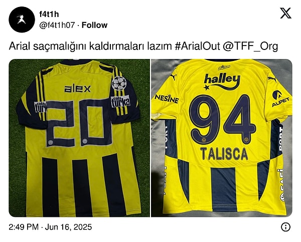 Futbolseverler, TFF’ye sesini duyurmak için X’te harekete geçti. ‘arialout’ etiketi altında reaksiyonlar lisana getiriliyor, eski ve başka liglerdeki formalara dikkat çekiliyor.