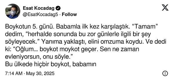 X hesabından bir paylaşım yapan Esat Kocadağ, şunları yazdı: