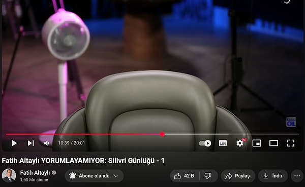 Fatih Altaylı’nın dün de boş koltukla yayınlanan programı bugün de birebir biçimde yayınlandı. 20 dakikalık görüntünün birinci 10 dakikasında Fatih Altaylı’nın yazdığı mektup okunurken ikinci 10 dakikasında da sessiz bir biçimde yalnızca boş koltuk gösterildi.