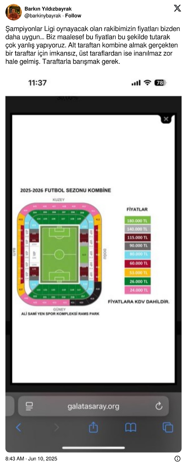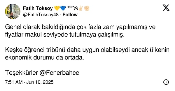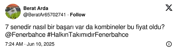 Fenerbahçe, 2025-26 dönemi için kombineleri satışa sundu ve belirlenen fiyatlar kısa müddette taraftarlar ortasında gündem oldu. Kulübün açıkladığı kombine fiyatları, toplumsal medyada farklı reaksiyonlara yol açtı. Birtakım taraftarlar fiyatları makul bulurken, kimileri sayıların yüksekliğinden şikayet etti. Sarı-lacivertli toplulukta yeni dönem heyecanı kadar, kombine fiyatlarının yarattığı tartışma da öne çıktı.