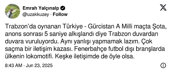 Fenerbahçe, Ulusal Ekibimize Karşı Oynayan Ana Cristina Paylaşımı ile Reaksiyon Çekti