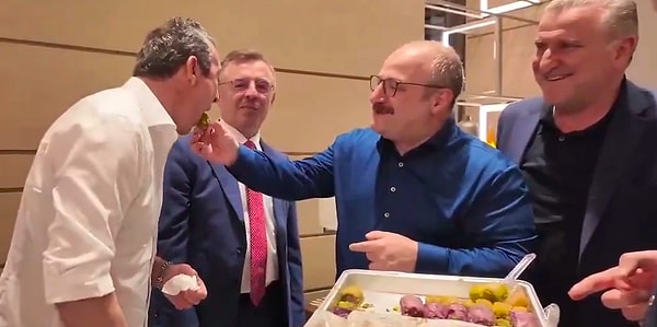 Gençlik ve Spor Bakanı Osman Aşkın Bak ile Türkiye’nin Abu Dabi Büyükelçisi Lütfullah Göktaş da baklava ikramı sırasında kameralara yansıdı.