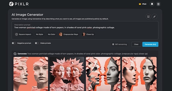 Pixlr, aslında bir fotoğraf düzenleme aracı fakat son vakitlerde metinle görsel üretme özelliğini de devreye aldı. Canva’ya alternatif olarak düşünebilirsiniz. Hazır şablonlar ve efektlerle görseli direkt toplumsal medya paylaşımına hazır hale getirebiliyorsunuz. Fiyatsız planda birçok araca erişim mümkün lakin kimi efektler, yazı tipleri ve dışa aktarma kalitesi yalnızca Pro’da bulunuyor. Yeniden de temel işler için ziyadesiyle kâfi.