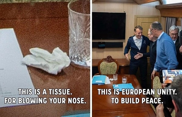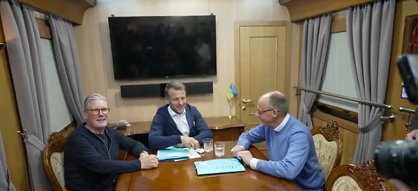Fransa Cumhurbaşkanı Emmanuel Macron, Almanya Başbakanı Friedrich Merz ve İngiltere Başbakanı Keir Starmer’ın yer aldığı imgeler gündem olmuştu.