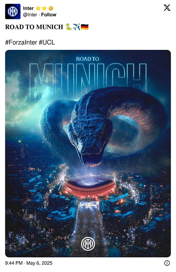 Barcelona’yı toplamda 7-6’lık skorla mağlup ederek Şampiyonlar Ligi’nde ismini finale yazdırma başarısı gösteren Inter’in toplumsal medyada paylaştığı ‘Münih’e giden yol’ temalı galibiyet gönderisi futbolseverlerde büyük ilgi uyandırdı. Taraftarlar, Inter’in dizaynını kendi grupları için uyguladı. Ortaya çok farklı görseller çıkarken Türkiye’deki kulüplerin bu bahsin üstününe fazla düşmemesi tenkitlere neden oldu.