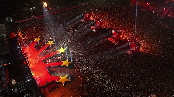 Sarı kırmızılı topluluk 25.şampiyonluk ve beşinci yıldızı Yenikapı Meydanı’nda kutluyor. Ağır program içerisinde birçok sanatkarın sahne aldığı geceye yağan yağmur gölge düşürdü.