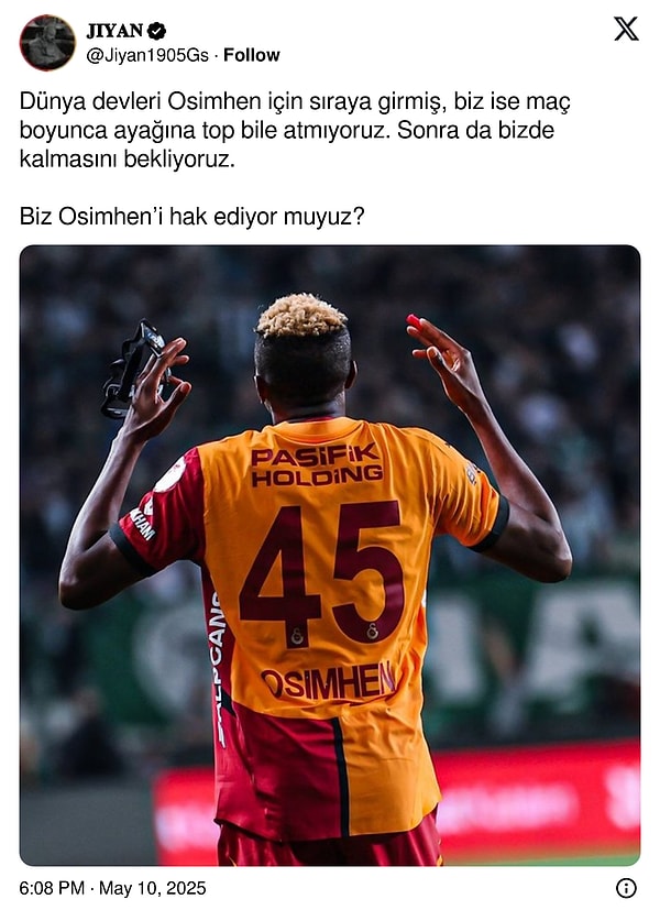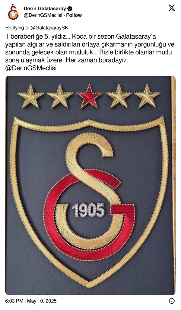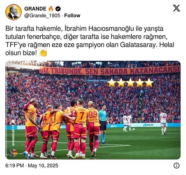 Trabzonspor’u 2-0’la geçerek Süper Lig’de şampiyonluğa koşan Galatasaray’da taraftarlar, gruplarının elde ettiği başarıyı kupa sevinciyle taçlandırmak için gün saymaya başladı. Sarı-kırmızılılar, toplumsal medyada kritik galibiyeti kutlarken futbolcularına övgüler yağdırdı.