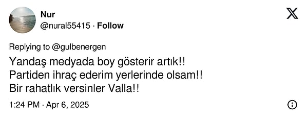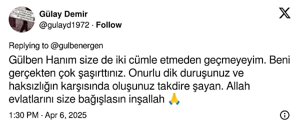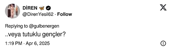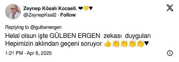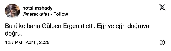 Gülben Ergen, X hesabından yaptığı paylaşımda şunları dedi:
