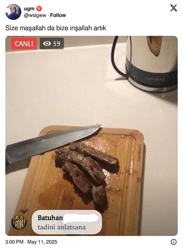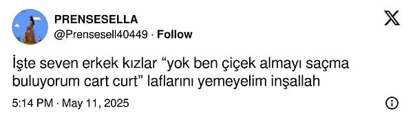Geçtiğimiz günlerde bir kullanıcı, bahar alerjisi olduğu için erkek arkadaşının kendisine çiçek alamadığını lisana getirdi. Lakin aşkta tahliller tükenmez! Çiçek alamayan erkek arkadaşı ise değişik bir tahlil bularak ‘maşallah’ çektirdi. Toplumsal medya kullanıcılarından yorumlar gecikmedi.