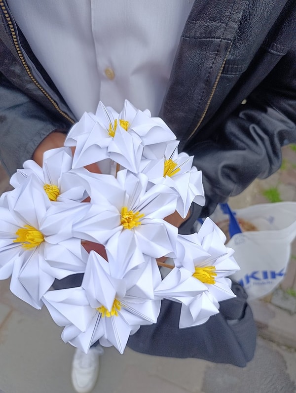 ‘Polene alerjim olduğu için hayatım boyunca çiçek alamayacağımı düşünürken kendi elleriyle çiçekler yapan sevgilim…’ notunu düşmeyi de ihmal etmedi…