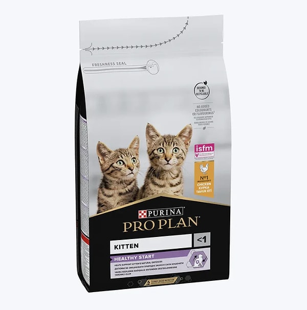 Yavru kediler için başka mama gerektiğini söyledik. Yavru kediler için tercih edilebilecek mama 10 kiloluk pakette geliyor. İçeriğinde tavuk ve pirinç olan mama renklendirici ve aroma verici içermiyor. Yavru kedinin bir öğünde alması gereken tüm besini almasını sağlayan Pro Plan mama ile kedin sağlıklı ve istikrarlı beslenerek büyüyor. Yavruyken düzgün beslenen kedin büyüyünce çok daha sağlıklı olacaktır. Anne sütünde bulunan DHA, bu mamada da bulunuyor.