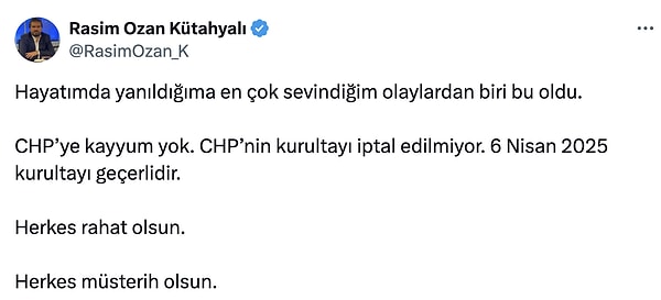 Seri paylaşımlar yaptı. Kurultayın iptal olmamasından ne kadar memnun olduğunu belirtti.