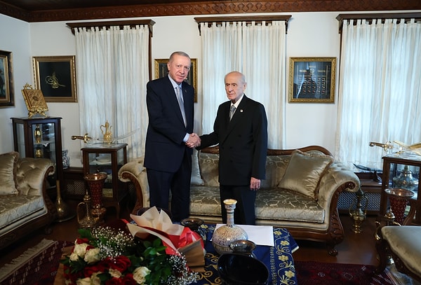 Cumhurbaşkanı Recep Tayyip Erdoğan, MHP Genel Başkanı Devlet Bahçeli’yi konutunda ziyaret etti.