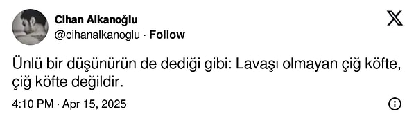 Yurdum insanı kelam konusu yemek olunca hudut tanımaz biliyorsunuz ki. Bu defa bir yenilikçi fikir de Ankara’dan geldi. Çiğ köfte ustası, yaz aylarının yaklaşması ve havaların ısınmasıyla birlikte çiğ köfteye yeni bir dokunuş getirdi. Daima lavaşla yiyecek değiliz ya? Biraz da külahla deneyelim :)