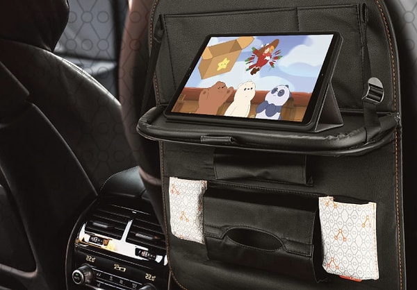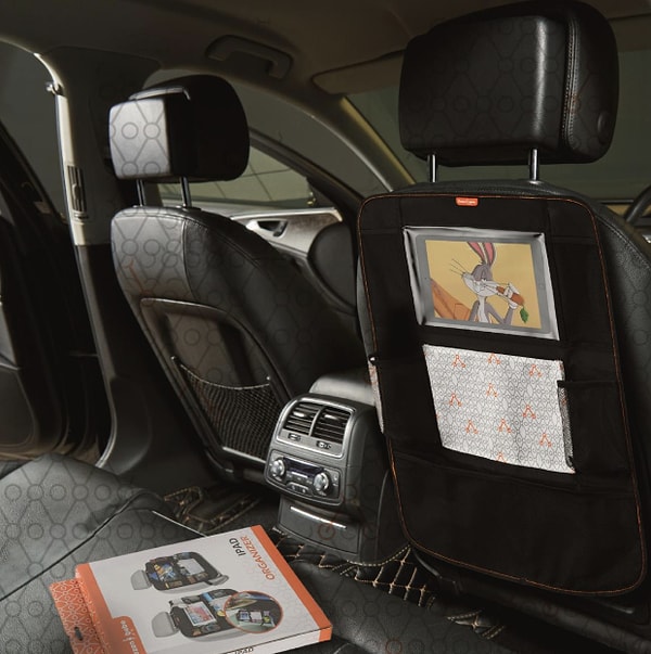 Seyahatlerde otomobilde çocuklar çok sıkılabiliyor. Bu tablet düzenleyicisi uzun seyahatleri eğlenceli bir maceraya dönüştürüyor. Sinema izlemek artık daha sistemli ve pratik. Geniş cepler, ekran sabitleyici alan ve su geçirmez materyal ile oldukça kullanışlı. Çocuğunuzun sevdiği sineması izlemesine ya da oyun oynamasına imkan veren düzenleyicinin geniş cepleri bulunuyor.