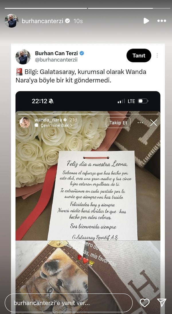 Paylaştığı kartta Galatasaray’ın kendisine teşekkür ettiği, emeklerinden ötürü kutladığı yazıyordu. Fakat takipçilerin gözünden bir şey kaçmadı: Bu paylaşım neden China’nın paylaşımından çabucak sonra geldi? Üstelik kırmızı değil beyaz güller olması da dikkat çekti. Kullanıcılar çabucak senaryoları yazdı: “Wanda kendi kendine çiçek mi gönderdi?”, “China’yı sinirlendirmek istedi ancak çuvalladı”…