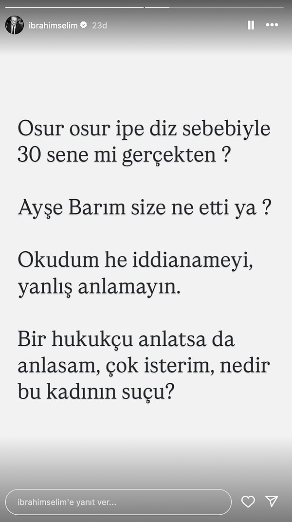 Metin Akdülger’in çabucak akabinde Ayşe Barım kararına bir reaksiyon de geçtiğimiz saatlerde İbrahim Selim’den geldi.