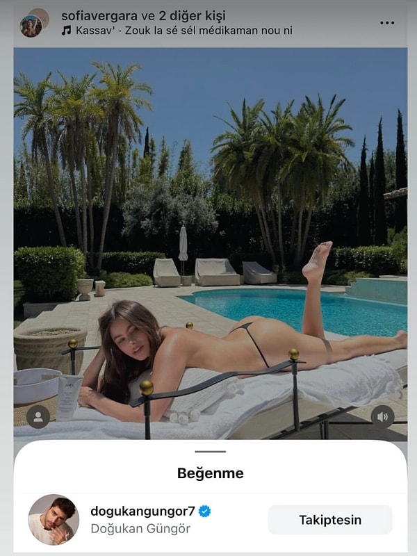 Son günlerde magazin sayfalarını meşgul eden Doğukan Güngör’ün toplumsal medya atağı olay oldu. Birkahvebingıybet isimli hesabın yaptığı paylaşımla ifşalanan, oyuncunun Modern Family dizisinin yıldızı 52 yaşındaki Sofia Vergara’nın güneşlenirken çekildiği üstsüz pozu beğendiği ortaya çıktı. Fakat, ifşalanan Doğukan, bu beklenmedik beğeninin akabinde süratle beğenisini geri çekti!